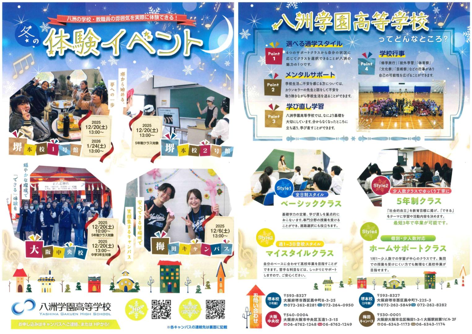12月20日(土)13時~ 場所:堺本校1号館/堺本校2号館(5年制クラス希望者対象)